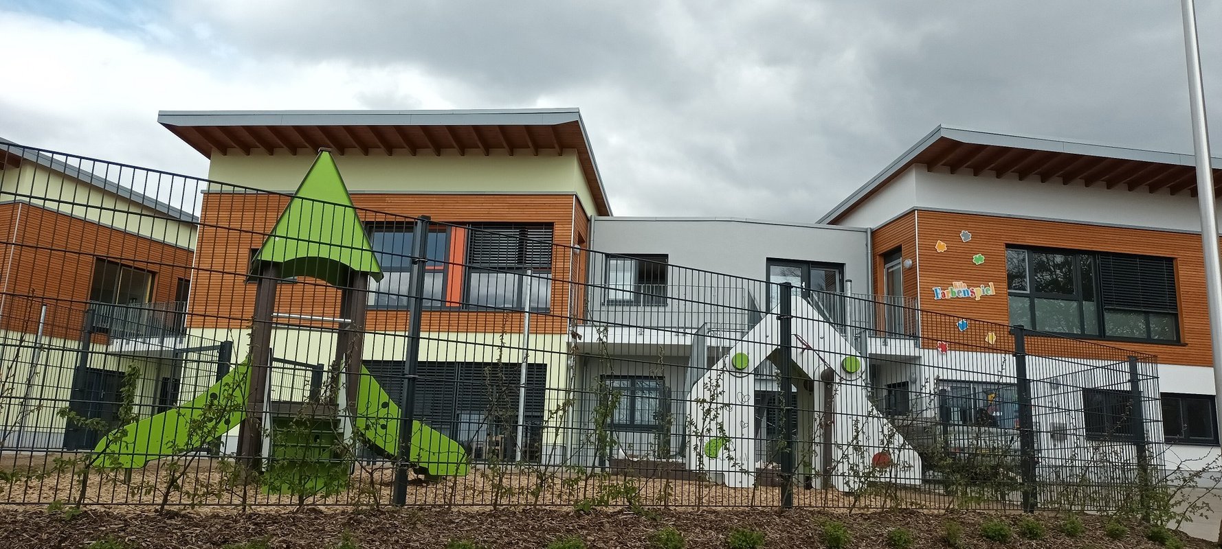 Unsere 2021 errichtete Einrichtung bietet auf 2 Etagen sowohl Regelkindergartenplätze als auch heilpädagogische Plätze für den Jugendamtsbereich MK an.