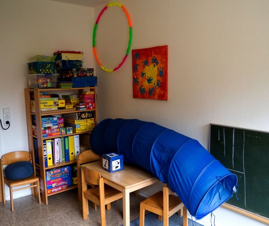 Unsere Einrichtung in Waldrandlage verfügt über zwei große Gebäudekomplexe. Daraus resultiert eine große Anzahl von Räumlichkeiten mit unterschiedlichen Nutzungsmöglichkeiten. Wir verfügen u.a. über diverse Therapieräume, zwei Turnhallen, einen großen Mehrzweckraum, Besprechungsräume, Bällchenbad und einen Wahrnehmungsraum.