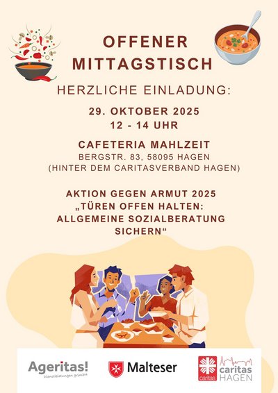 Aktion gegen Armut: Offener Mittagstisch bei der Caritas