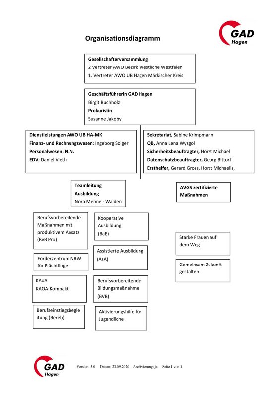 AWO Unterbezirk Hagen - Märkischer Kreis | Organigramm GAD